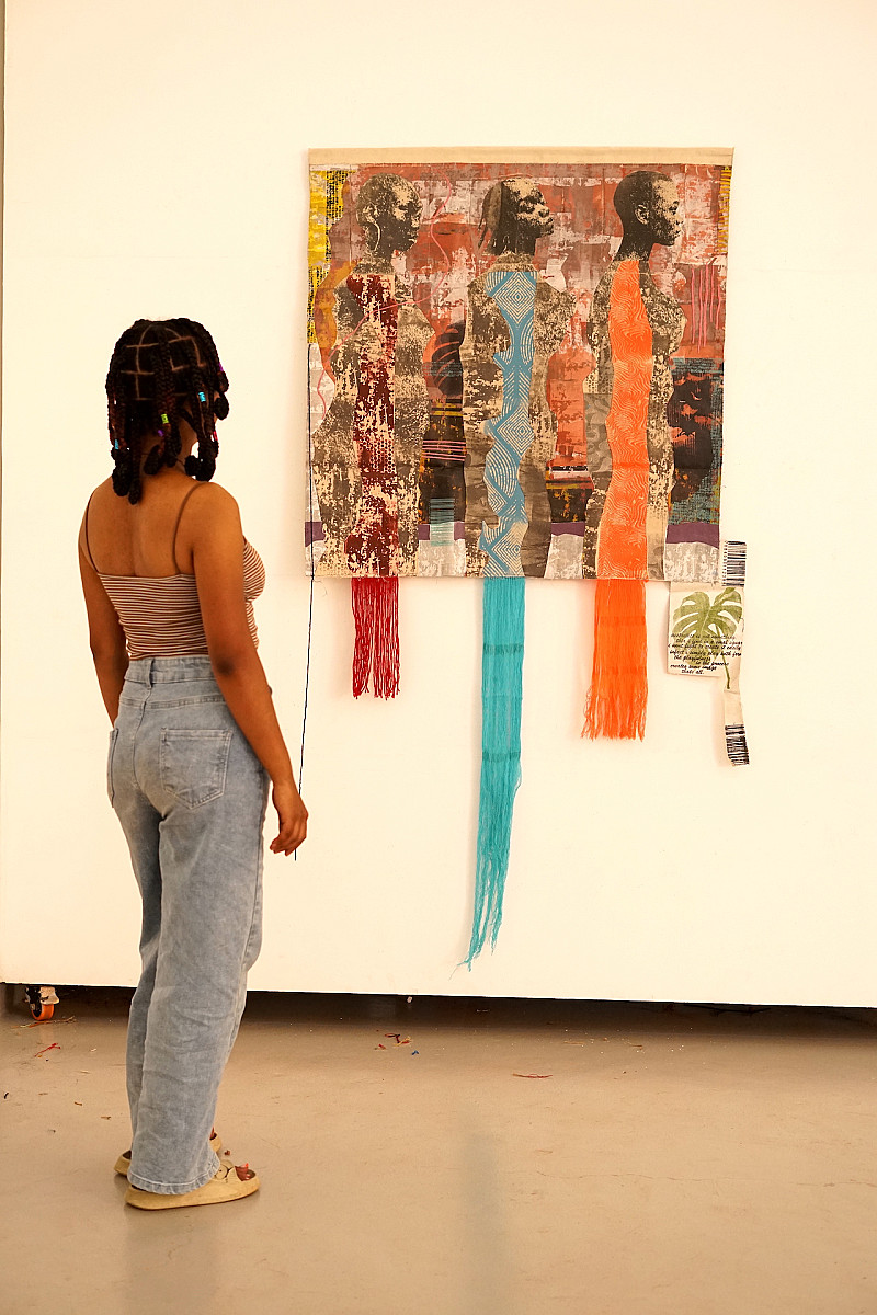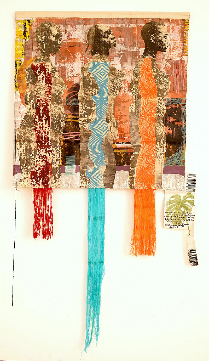 , Kaleab Abate , Silkscreen prints and yarn on fabric