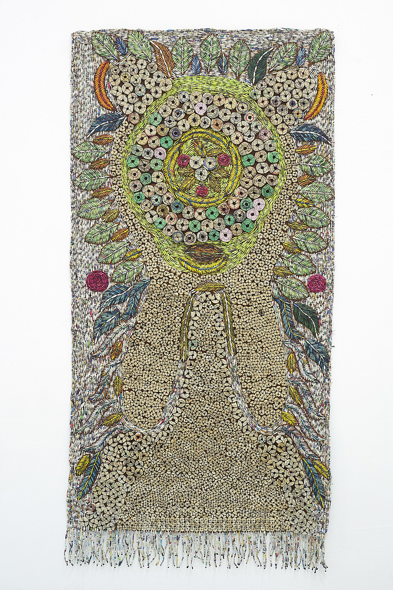 , Sanaa Gateja , Paper beads on bark cloth