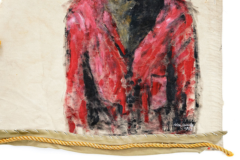 , Nelsa Guambe , Acrylics on repurposed sail