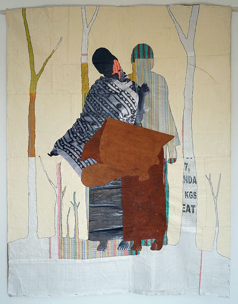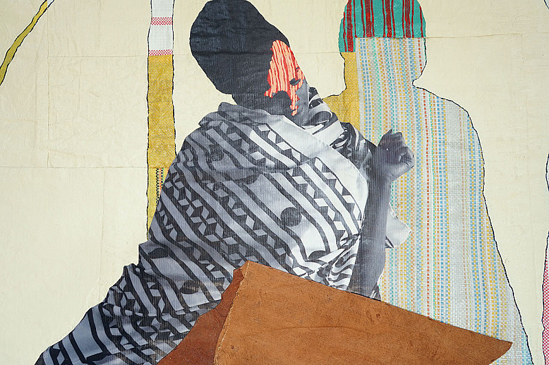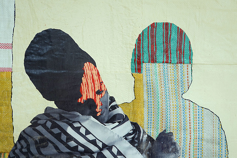 , Collin Sekajugo , Mixed media (Polypropylene, paint, photo, canvas)