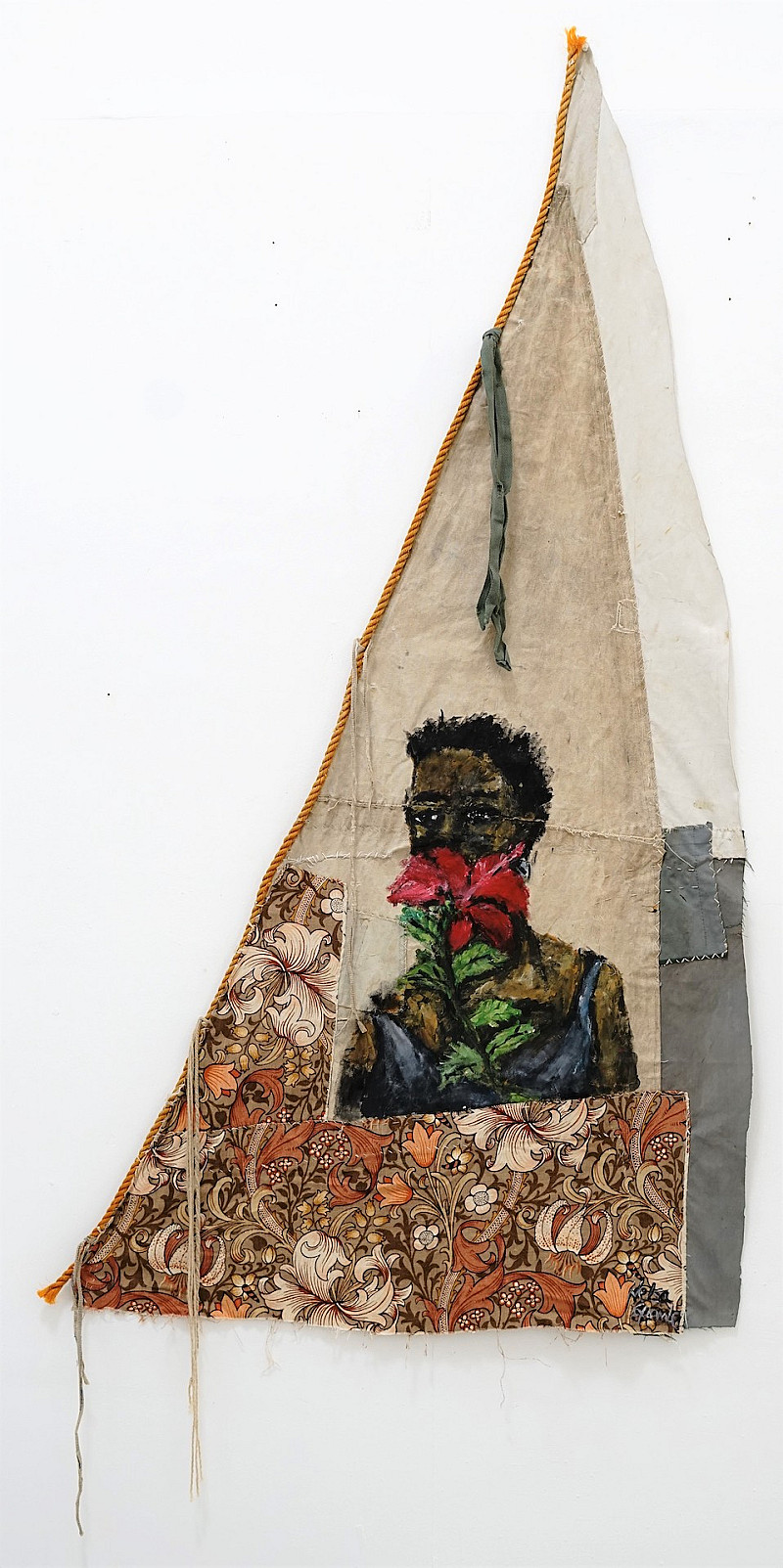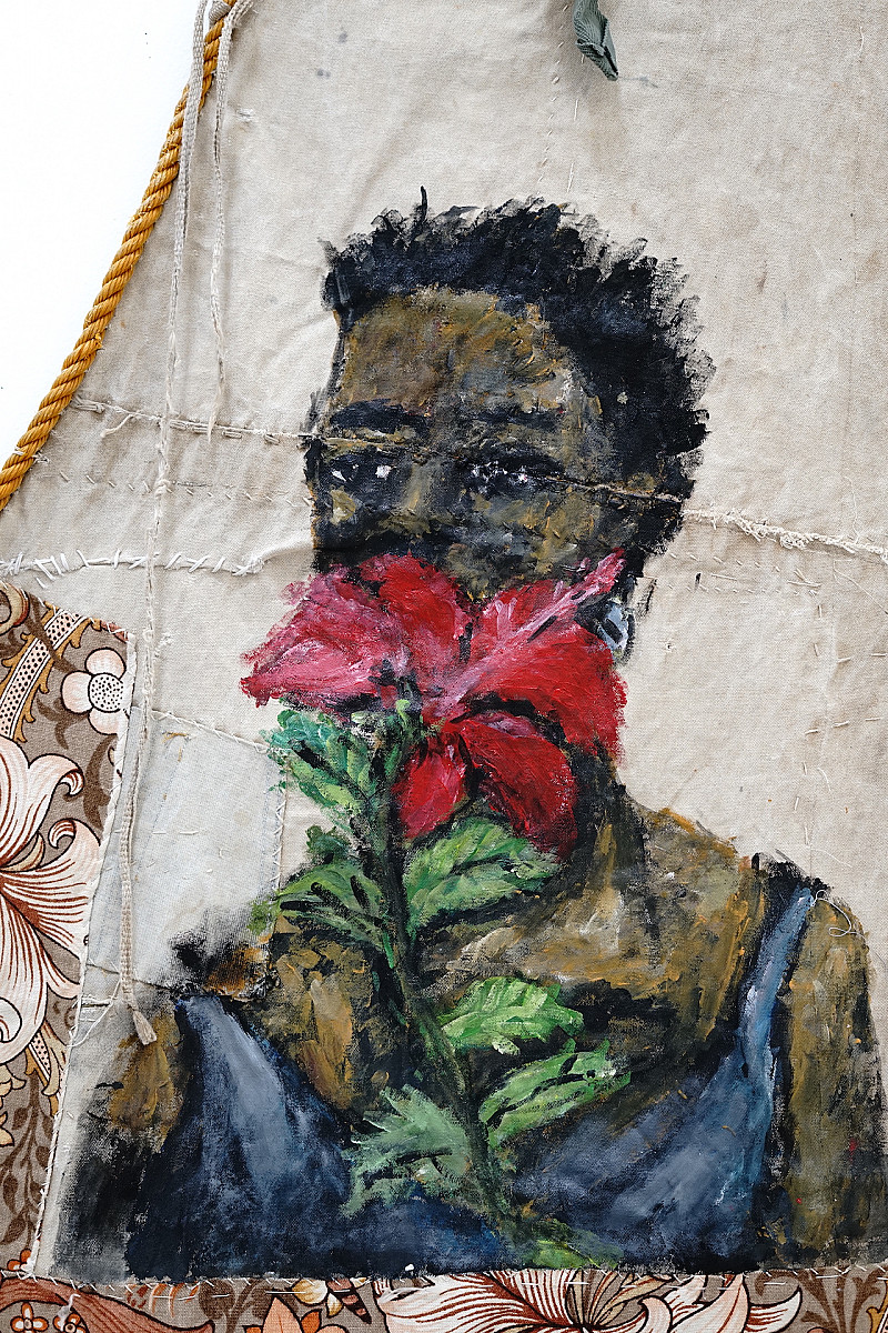 , Nelsa Guambe , Acrylics on repurposed sail