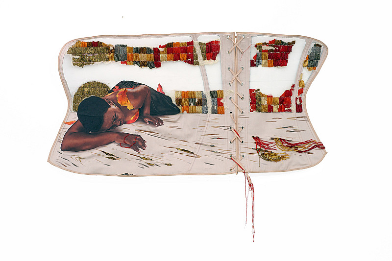 , Charlene Komuntale , Digital Print on Fabric, Beads, Threads, Satin and Mesh, Yarn, Organza