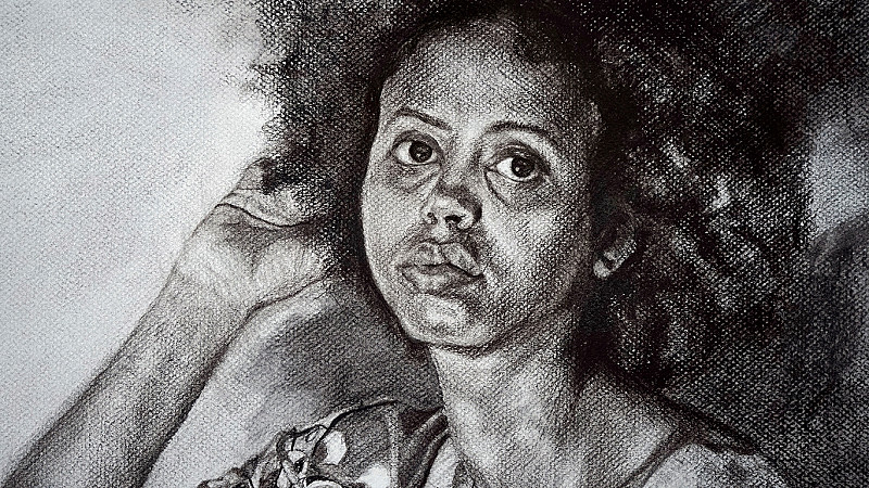 , Mona Taha , Charcoal and graphite on pastel paper